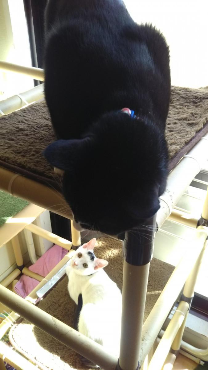 お尻嗅ぎ合う仲良し猫親子 ワンにゃん天孫降臨